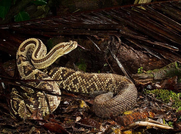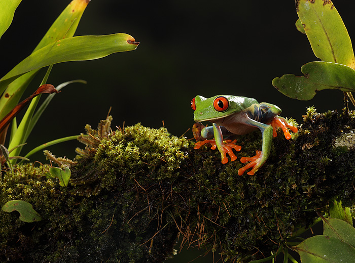 Also on the itinerary was a visit to the Snake Zoo in nearby El Castillo. Greg Basco’s friend Victor Quesada runs the zoo and his collection of snakes, frogs and lizards are well cared for as evidenced by the condition of the animals and the cleanliness of their enclosures. Greg and Joe put together a studio set-up with flash, and softboxes for the small critters, and mostly used the distant landscape as a background, although some images used photographed backgrounds.. The branches and flowers used as props were collected on the side of the road before we arrived at Victor’s. As Joe has a great deal of experience handling venomous snakes, he set up a forest floor scene outside the front entrance, and Victor supplied him with the larger snakes to photograph. It was a great opportunity to photograph all these animals in a short period of time, and in a safe environment.