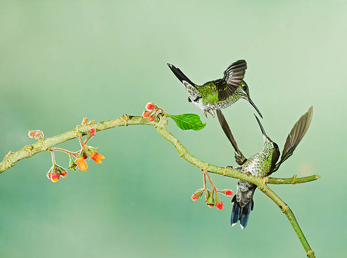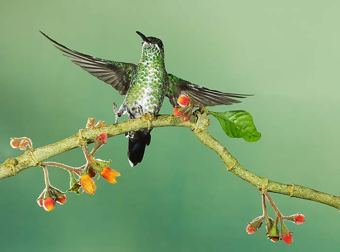 One of the challenges I set myself was to capture hummingbirds landing. It’s not a matter of just setting the camera to the highest frame rate and hope for the best, but an anticipation that the landing was going to occur. With the lens focused on the flower, and framed wide enough to capture the bird as it came in, I’d take my eye away from the viewfinder and look at the larger scene to spot a hummer coming in for a landing.