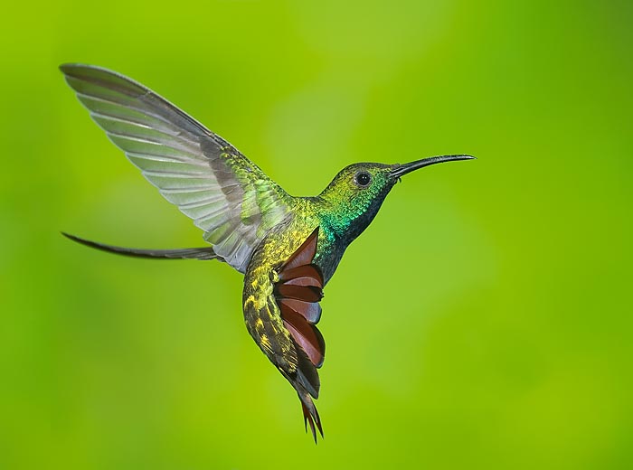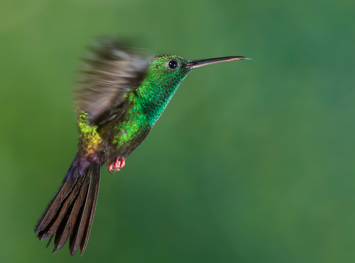 Since the birds are attracted to the photographic setup using a feeder, the images are predominantly side views of the hummingbird coming in to the feeding tube. I tried to be aware of the flight of the hummer and attempt to get some images with the birds in different attitudes.