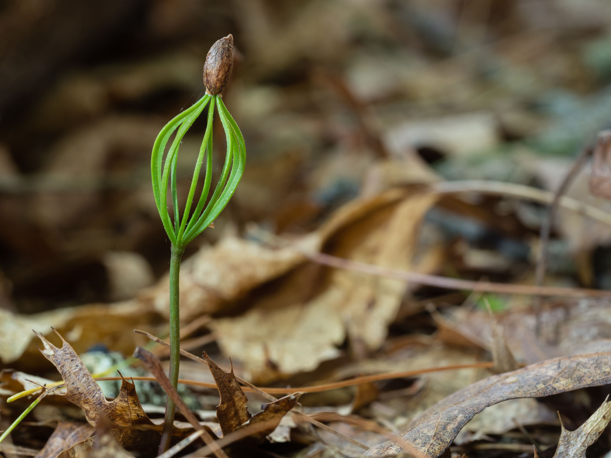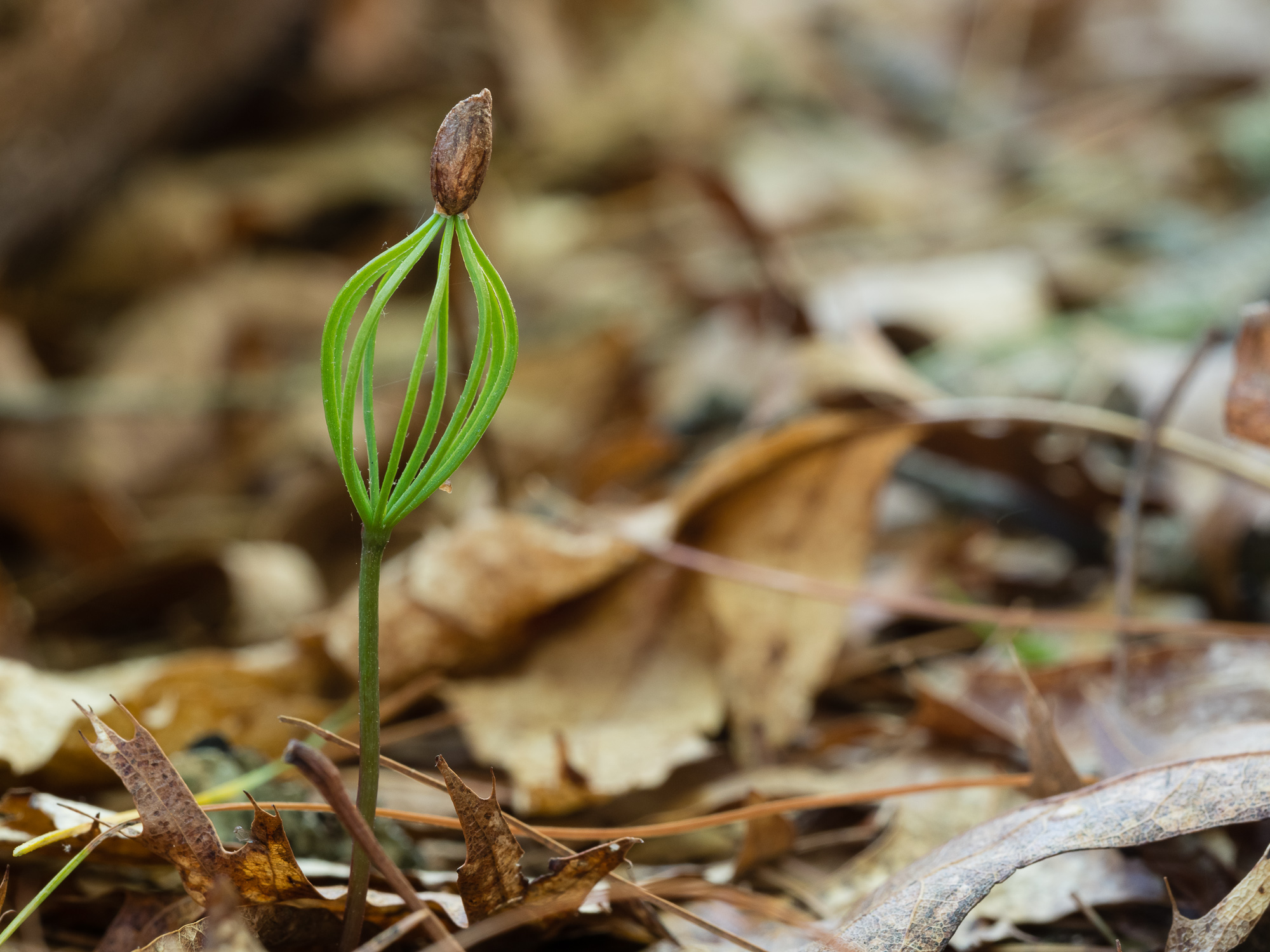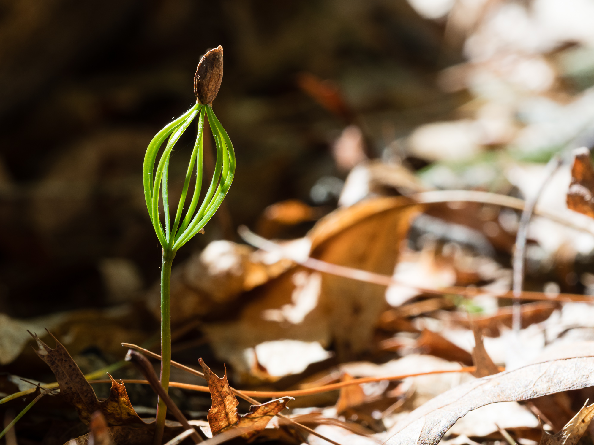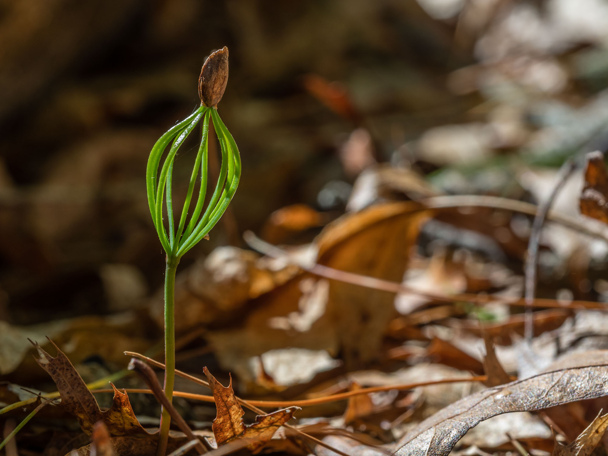 I dropped the overall exposure by about 2/3 stop and used the LED light to help separate the seedling from the dark background. It also brought out the texture of the seed and in the stem.