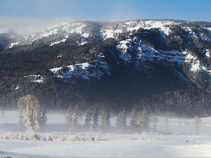 After attending the Natural Exposures Yellowstone in Winter Photo Tour described in Part 1, I picked up a rental car in Bozeman and continued my winter adventure based in Gardiner, MT. Gardiner is only a few miles from the north entrance to the park and Mammoth Hot Springs. Highway 212 passes through the northern section of the park to Cooke City just outside the northeast park boundary. This road is maintained year round and is the only means to reach Cooke City during the winter.